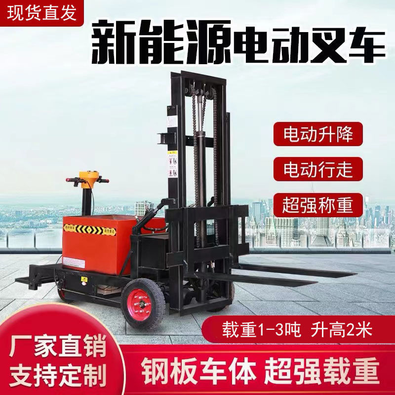 河南省小型电动叉车1吨站驾式2吨液压升高铲车全自动仓储堆高车